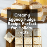 Keywords: eggnog fudge, holiday fudge recipe, white chocolate fudge, festive desserts, Christmas fudge