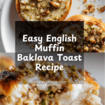 This English Muffin Baklava is a quick and delightful twist on the classic Middle Eastern dessert. Toasted English muffins are topped with a buttery, nutty mixture of walnuts and pistachios, then broiled until caramelized. Finished with creamy mascarpone cheese, a drizzle of honey, and extra nuts for crunch, this recipe offers a rich, sweet, and nutty flavor combination that’s perfect for breakfast or a special snack.
