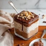 Delight in a nutritious and indulgent breakfast with these Ferrero Rocher Protein Overnight Oats featuring chocolate protein powder, creamy yoghurt, crunchy hazelnuts, and puffed rice, with an optional drizzle of dark chocolate for extra decadence. Perfect for a quick morning meal packed with protein and flavor.