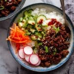 - Serve: Spoon the Firecracker Beef over cooked rice, soba, or vermicelli noodles. Garnish with sliced green onion, a sprinkle of sesame seeds, and your choice of fresh vegetables like diced cucumber, julienned carrot, and sliced radish. Add extra sriracha sauce on top if you prefer more heat. Enjoy your spicy and satisfying meal!