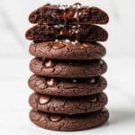 These Flourless Chocolate Cookies are a rich, fudgy treat made without any flour, perfect for those seeking a gluten-free or low-carb dessert. Combining almond butter, cocoa powder, and sugar-free chocolate chips, these cookies offer intense chocolate flavor with a chewy texture, lightly finished with optional flaky sea salt for a delightful contrast.