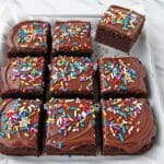 - Frost the Brownies: Pour the warm frosting evenly over the baked brownies while still hot. Optionally, add sprinkles at this time. Allow the brownies to cool completely so the frosting can set before slicing and serving.