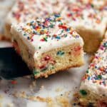 - Serve: Slice the sheet cake into 12 pieces. Serve and enjoy your colorful and festive Funfetti Sheet Cake!