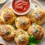 These Garlic Knot Rolls are soft, fluffy, and packed with buttery garlic flavor. Perfectly shaped into knots and baked to a golden brown, they are brushed with a fragrant garlic butter mixture and sprinkled with Parmesan cheese and flaky sea salt. Serve them warm alongside marinara sauce for a delicious appetizer or side dish.