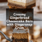 Keywords: gingerbread cheesecake, holiday dessert, cheesecake bars, spiced dessert, gingersnap crust, whipped cream topping, festive dessert