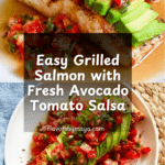 A delicious and healthy grilled salmon recipe topped with fresh avocado and vibrant tomato salsa, perfect for a quick and nutritious meal.