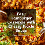 This hearty Hamburger Casserole combines comforting flavors of seasoned ground beef, elbow macaroni, and melted cheddar cheese with tangy pickles and a crisp romaine topping, all baked to bubbly perfection. It’s a quick, family-friendly meal perfect for busy weeknights or a make-ahead dinner option.