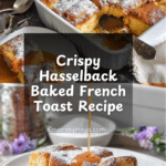This Hasselback Baked French Toast recipe transforms a classic breakfast favorite into a visually stunning and indulgently delicious dish. Using a baguette cut into thick slices like hasselback potatoes, the bread is soaked in a rich egg and milk mixture, baked to golden perfection, and topped with a buttery brown sugar glaze. Finished with a dusting of icing sugar and a drizzle of maple syrup, this recipe offers a crispy, custardy delight perfect for weekend brunches or special occasions.