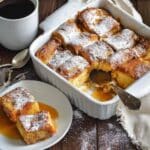 - Rest the French Toast: Take the dish out of the oven and let it rest for 5 minutes to set slightly and cool just enough for serving.