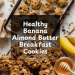 Keywords: Breakfast cookies, healthy breakfast, banana cookies, almond butter cookies, oat cookies, wholesome snack, easy breakfast, homemade cookies