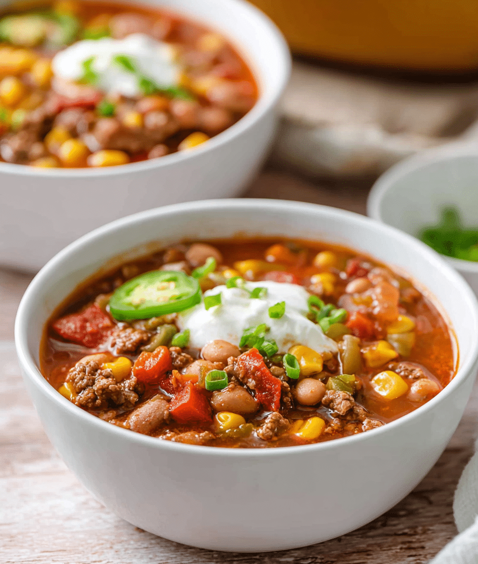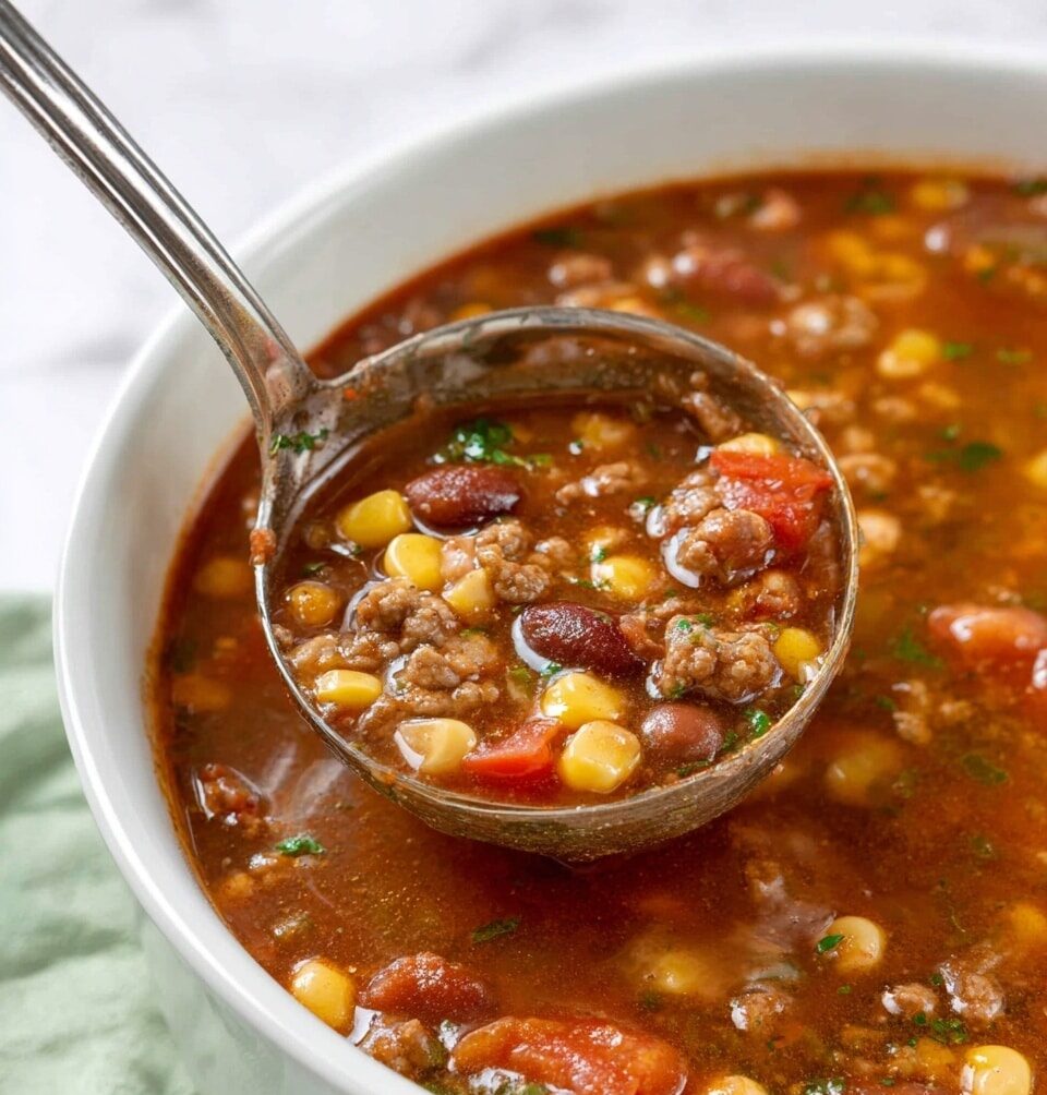 This hearty Taco Soup is a flavorful and comforting one-pot meal perfect for busy weeknights. Packed with lean ground beef, beans, corn, and a zesty blend of tomatoes and mild green chiles, this soup brings a delicious Tex-Mex twist that’s easy to prepare and satisfying for the whole family.