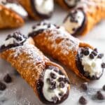 Traditional Italian cannoli shells filled with a smooth, sweet ricotta and mascarpone cheese blend, fried to golden perfection and optionally dipped in chocolate for an irresistible treat. Crispy, creamy, and delicately spiced, these homemade cannoli offer authentic flavors with a satisfying crunch.