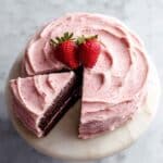 This homemade strawberry cake is a moist and tender layer cake infused with fresh strawberry puree and topped with a creamy strawberry cream cheese frosting. Made with a reduced strawberry puree and freeze-dried strawberry powder, it delivers an intense strawberry flavor perfect for special occasions or a delightful treat.