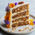 This classic Hummingbird Cake is a moist, flavorful Southern dessert featuring ripe bananas, crushed pineapple, and toasted pecans layered with a rich cream cheese frosting. Perfect for special occasions, this cake combines warmth from cinnamon and sweetness from brown sugar to create an irresistibly tender treat garnished with dried pineapple rings and edible flowers for an elegant finish.