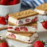 These Japanese Cheesecake Ice Cream Sandwiches combine creamy, tangy farmer cheese with sweet cinnamon cookies and fresh strawberries. They make a delightful frozen treat that’s easy to assemble and perfect for warm days.