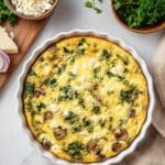 Keywords: kale quiche, crustless quiche, healthy breakfast, low-carb quiche, gluten free quiche, feta cheese quiche, vegetable quiche, easy brunch recipe