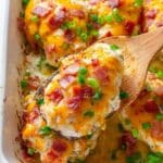 Keto Crack Chicken is a creamy, cheesy baked chicken dish flavored with bacon, garlic, and herbs, perfect for a low-carb keto-friendly meal. Tender chicken breasts are browned in a skillet before being baked with a rich cream cheese mixture and topped with crispy bacon and melted shredded cheese.