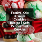 Kris Kringle Crinkles are festive, soft cookies perfect for holiday celebrations. These peppermint-flavored treats are colorful, chewy, and dusted with powdered sugar for a snowy finish.