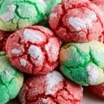 Kris Kringle Crinkles are festive, soft cookies perfect for holiday celebrations. These peppermint-flavored treats are colorful, chewy, and dusted with powdered sugar for a snowy finish.