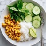 - Step 4: Serve immediately alongside rice and your choice of fresh toppings such as sliced cabbage, chopped herbs, avocado, cucumber, and a fried egg.