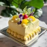 This Layered Herb Butter Cake is a beautifully crafted, savory butter dish enhanced with fresh herbs, lemon zest, and Parmigiano Reggiano. Perfect as a stunning centerpiece for cheese boards or elegant parties, it features layers of butter infused with chives and dill, finished with a smooth whipped butter frosting and decorative edible flowers and radishes. Serve chilled with toasted bread or crackers for a delicious and creamy spread that elevates any appetizer platter.