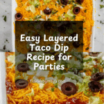 Layered taco dip is a crowd-pleasing appetizer perfect for parties or casual gatherings. Combining creamy, tangy, and savory flavors, it’s easy to assemble and even easier to enjoy. Serve it with tortilla chips for a tasty and satisfying snack.