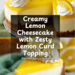 This classic Lemon Cheesecake features a buttery graham cracker crust, a smooth and creamy lemon-infused cheesecake filling, topped with tart homemade lemon curd and a light whipped cream garnish. Baked in a water bath to ensure a silky texture without cracks, this dessert is perfect for lemon lovers seeking a rich yet refreshing treat.