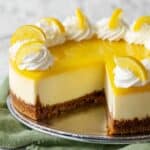 This classic Lemon Cheesecake features a buttery graham cracker crust, a smooth and creamy lemon-infused cheesecake filling, topped with tart homemade lemon curd and a light whipped cream garnish. Baked in a water bath to ensure a silky texture without cracks, this dessert is perfect for lemon lovers seeking a rich yet refreshing treat.