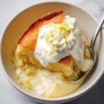 Keywords: Lemon pudding cake, lemon dessert, baked lemon pudding, water bath dessert, light lemon cake, citrus pudding