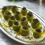 This Mediterranean Labneh Dip is a creamy, tangy delight perfect for any gathering. Enhanced with olive brine and a hint of lemon zest, it’s both refreshing and flavorful. Topped with caviar-stuffed olives, it makes an elegant appetizer that’s simple to prepare.