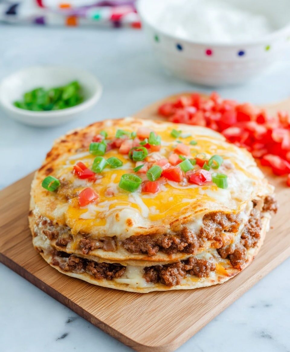 Mexican Pizza is a delicious, layered dish packed with savory ground beef, creamy refried beans, and melted cheese, all sandwiched between crispy tortillas. It’s a fun twist on traditional pizza that’s perfect for a family dinner or casual gathering.