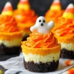 These Mini Candy Corn Cheesecakes are a festive and delightful treat perfect for fall and Halloween celebrations. With layers of vibrant yellow, orange, and white cheesecake filling on an Oreo crust, they look as good as they taste.
