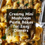 Mini Mushroom Pasta Bakes are individual-sized creamy pasta casseroles bursting with caramelized onions, garlic, and crispy mushrooms, layered with smoky Gouda cheese, and topped with a golden breadcrumb crust. These savory bakes offer a comforting twist on classic mac and cheese, perfect for cozy dinners or entertaining.