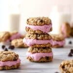 These Mini Oatmeal Chocolate Chip Berry Frozen Yogurt Cookie Sandwiches are a delightful treat perfect for warm days. Soft oatmeal cookies filled with a fruity frozen yogurt make a refreshing and satisfying snack or dessert. They’re easy to make and sure to impress your family and friends.