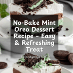 This Mint Oreo Dessert is a cool, creamy, and refreshing treat perfect for any occasion. It combines the rich flavors of cream cheese and chocolate pudding with a minty twist and crunchy Oreo crust. No baking required, making it an easy crowd-pleaser.