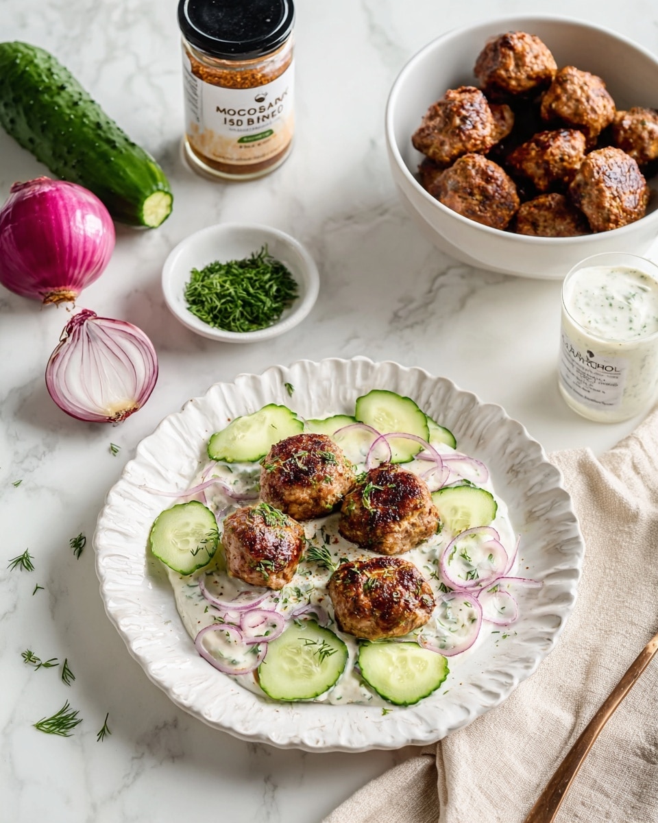 Store leftover meatballs and dip separately in airtight containers in the refrigerator for up to 3 days. Reheat meatballs gently in the oven or microwave until warmed through. The yogurt dip is best served fresh but can be refrigerated and stirred before serving.