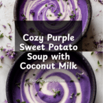 Keywords: purple sweet potato soup, roasted vegetable soup, creamy coconut soup, vegetarian cozy soup, autumn soup recipe, healthy vegetable soup