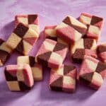 Neapolitan Checkerboard Cookies are a delightful treat combining three classic flavors: vanilla, strawberry, and chocolate. These visually stunning cookies feature layers of shortbread dough arranged in a checkerboard pattern, making them as fun to look at as they are to eat.