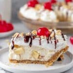 Keywords: No bake, banana split pie, cream cheese pie, easy dessert, fruit pie, banana dessert, no bake pie