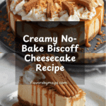 This no-bake Biscoff cheesecake is a delightful treat combining the rich, spiced flavor of Lotus Biscoff biscuits with a creamy, smooth filling. Easy to prepare and perfect for any occasion, it’s a crowd-pleaser that requires no oven time.