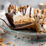 This No Bake Cream Cheese Peanut Butter Pie is a rich and creamy dessert featuring a buttery graham cracker crust and a smooth peanut butter and cream cheese filling, topped with whipped cream and chocolate syrup for extra indulgence. Perfect for a quick and easy treat without turning on the oven.