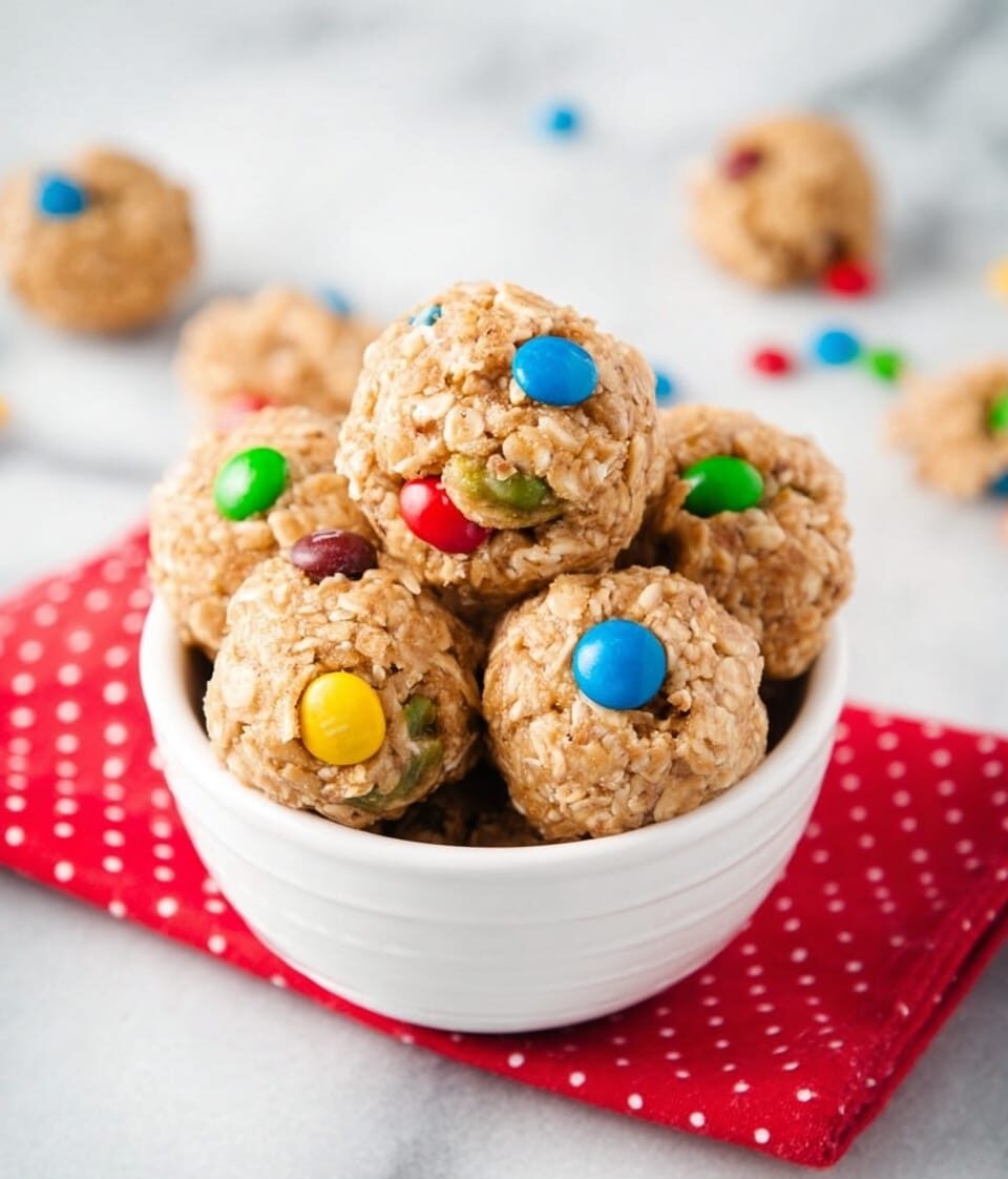 These No Bake Energy Bites are a quick and delicious snack packed with oats, peanut butter, honey, and a mix of M&M’s and chopped peanuts for extra crunch and sweetness. Perfect for a convenient energy boost without the need for baking.
