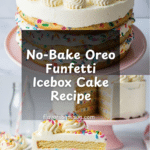 This No-Bake Oreo Funfetti Icebox Cake is a delightful layered dessert combining creamy funfetti mousse with milk-dipped Golden Oreos, topped with fluffy whipped cream and sprinkles. Quick to assemble and requiring no baking, it’s a perfect, festive treat for celebrations or any time you crave a fun, creamy dessert.