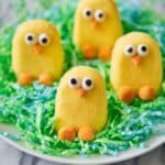- Set and Store: Let the decorated cookies set at room temperature for 1 to 2 hours, allowing the chocolate to fully harden. Once set, store the Nutter Butter chicks in an airtight container to maintain freshness.