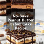 Keywords: Peanut Butter Icebox Cake, no bake dessert, peanut butter cheesecake, Reese’s dessert, graham cracker cake, easy summer dessert, chocolate peanut butter cake