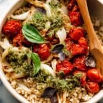 PrintPesto Orzo with Roasted Cherry Tomatoes, Fennel & White Beans (Vegan) Recipe