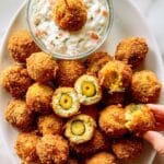 Pimento Cheese Fried Olives are a delightful appetizer combining the creamy tang of pimento cheese with the satisfying crunch of fried breadcrumbs. These bite-sized treats are perfect for parties or a fun snack that impresses with every crispy, cheesy bite.