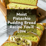 This delightful Pistachio Pudding Bread combines moist, flavorful cake-like bread infused with pistachio pudding mix and topped with a sweet glaze, perfect for a unique snack or dessert. Soft, nutty, and slightly sweet, it’s an easy-to-make loaf that adds a nutty twist to traditional quick breads.