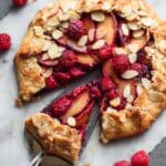 Keywords: plum galette, raspberry galette, amaretto dessert, rustic tart, fruit galette, easy baked desserts, fall dessert, almond tart