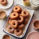 - Finish and Serve: Once doughnuts are cool enough to handle, dust with powdered sugar or toss in cinnamon sugar to coat evenly. Serve immediately and enjoy.